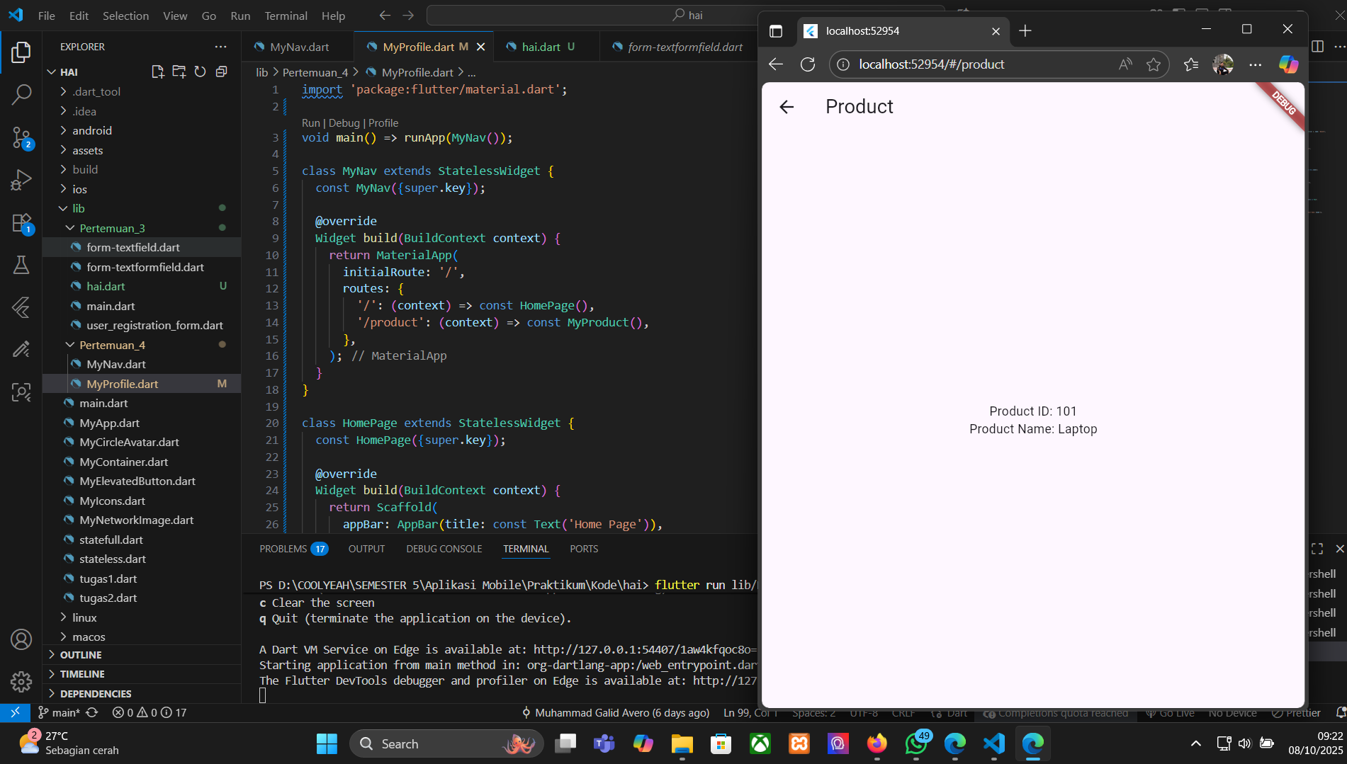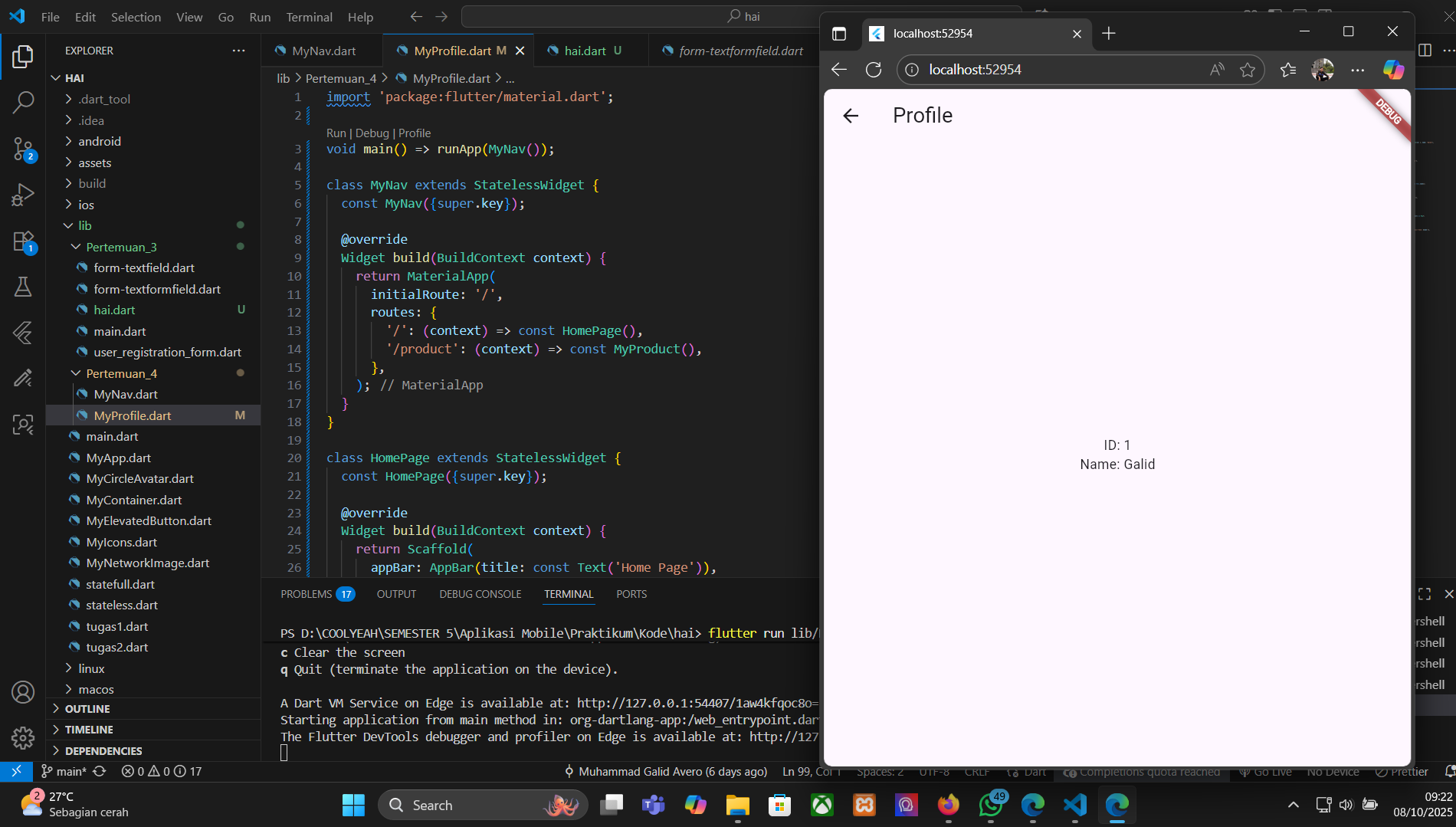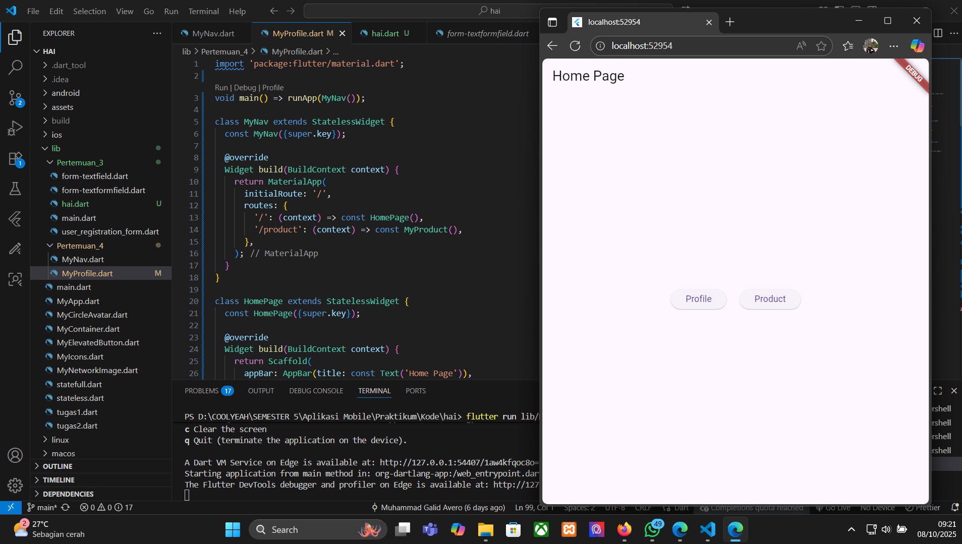 - Buat file dart baru, disini saya menamakannya MyProfile.dart lalu isikan dengan kode ini
